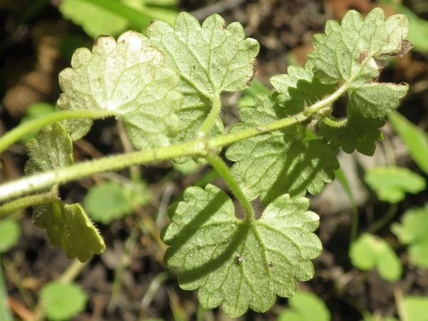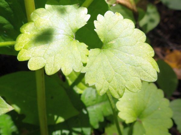 f. macrophyllum H. Hara (オオマルバネコノメ), leaves on stolons = 2-2.5 cm |