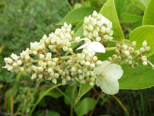f. grandiflora (Sieb. ex van Houtte) Ohwi or cv. grandifolora (ミナヅキ, 水無月), cultivars - sterile f. velutina (Nakai) Kitamura, or var. velutina Nakai (ビロードノリウツギ, 天鵞絨糊空木), leaves developing dense hair and cultivarsNotesRecords in Japan: along O-sawa Course in Nopporo Forest Park on July 17 2021. Near Kintaro Rock between Togendai and Ubako, Hakone, central Honshu, on August 21 2021. |